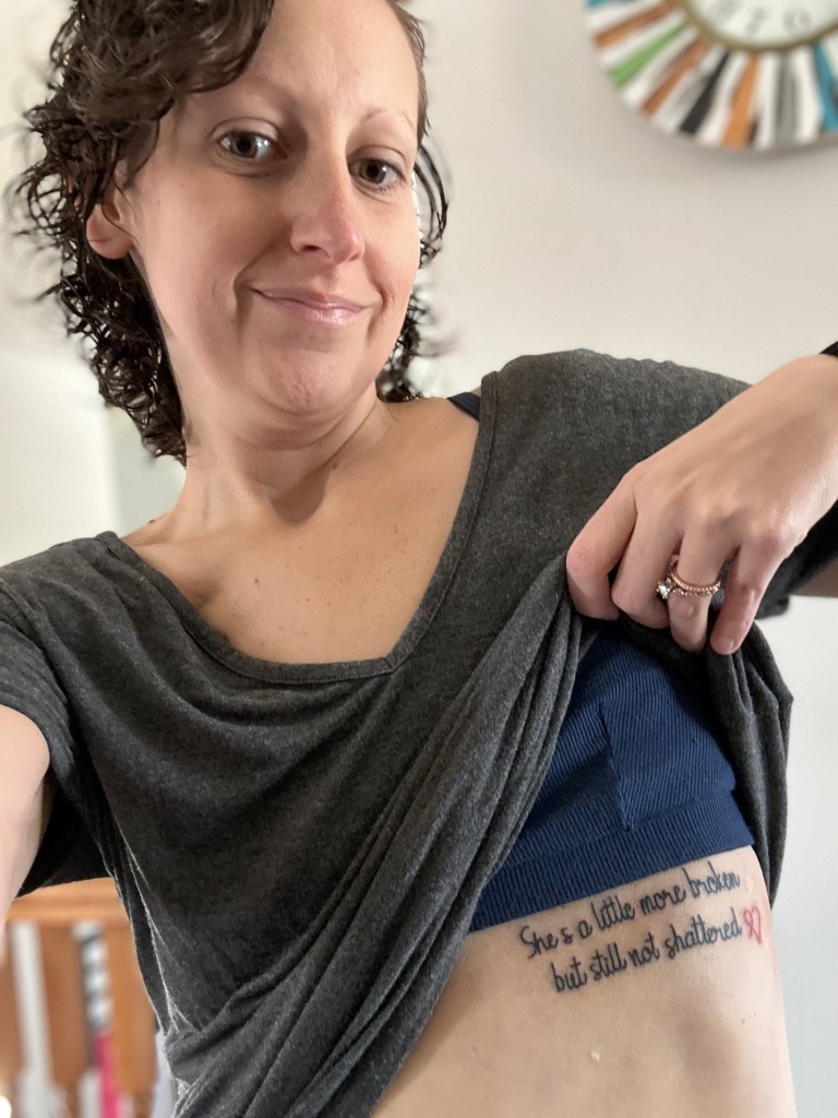 Don’t get me wrong, being flat from a mastectomy does draw the eye. I have since learned that people can look and judge, but I am PROUD of my flat chest. I am proud of my countless scars and permanent bruises. My body went through hell and back on more than one occasion, and I am proud because I am here today, healthier than ever. I am here to raise my babies. I am here to be a wife to my husband. I am here to be a daughter, sister, coworker, and friend.